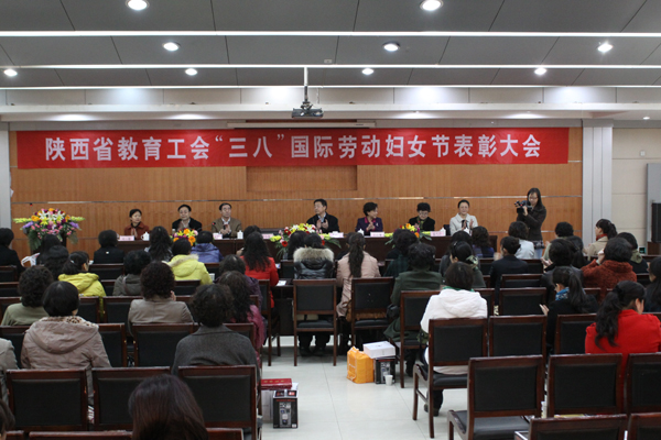 (本网讯)3月4日上午,陕西省教育工会庆祝“三八”国际劳动妇女节暨表彰大会在西安邮电学院长安校区召开。 陕西省总工会副主席、陕西省教育工会主席李向柱,陕西省总工会副主席王淑琳,省教育工会常务副主席张敏出席大会并讲话。会议由省教育工会女工委主任、西安工业大学工会主席徐雪芹主持。