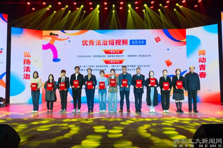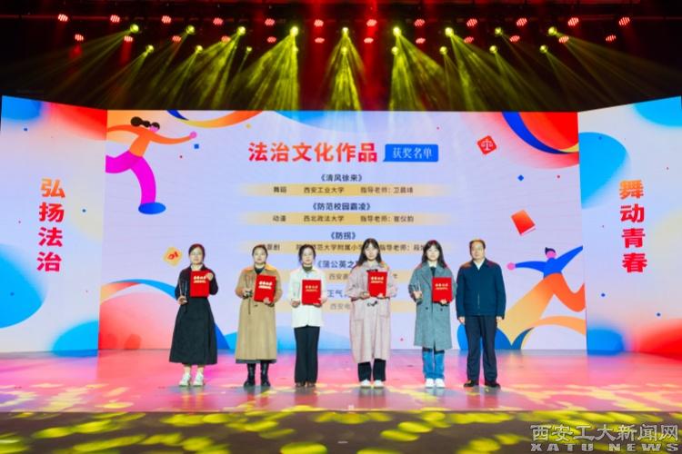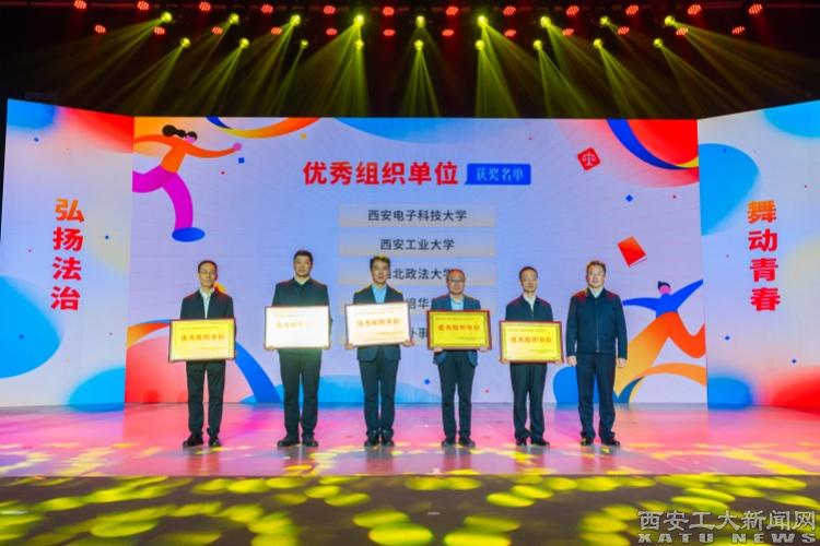 (本网讯)10月22日,陕西省第九届高校法治文化宣传季成果汇报暨第十届高校法治文化宣传季启动仪式在西安电子科技大学举行。省委常委、省委政法委书记、省委全面依法治省委员会秘书长、省委依法治省办主任刘强,省委宣传部、省委政法委、省教育厅、团省委、省关工委有关领导出席。我校副校长何春水参加有关活动。我校荣获陕西省第九届高校法治文化宣传季“优秀组织单位”奖,两件作品获表彰。