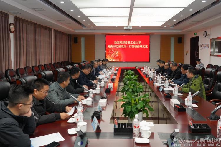 在航空工业陕飞,侯成义一行参观了公司科技展览馆和总装生产线,并与航空工业陕飞党委书记、董事长安刚围绕科研协同、人才共育等内容开展深入交流。安刚对侯成义一行的到访表示欢迎,他指出,西安工业大学军工特色鲜明,学科优势突出,办学基础扎实。希望双方进一步加强在重大项目联合申报、关键技术协同攻关等方面的合作,进一步探索人才联合培养机制,共同赋能国防科技高质量发展。