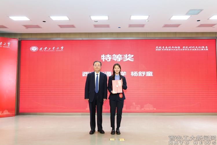 王海波指出,本次大赛是陕西省教育系统深入学习贯彻党的二十届四中全会精神、服务教育强国与文化强国建设的重要举措,为中外合作办学学生提供了展示能力、交流互鉴的平台。他强调,陕西作为中华文化的重要发祥地和科教大省,始终坚持教育对外开放,紧抓“一带一路”建设机遇,将区位与文化优势转化为教育发展优势,持续推动中外合作办学提质增效,有力支撑了高校“双一流”建设和高素质国际化人才培养。他希望同学们拓展全球视野,以开放包容的胸襟和深入透彻的交流,在世界文明互鉴中当好增进理解、建立互信的桥梁和使者;要坚定文化自信,运用创新多元、易于国际理解的表达方式,讲好中国故事,在文明对话中彰显中华文化的独特魅力;要胸怀国之大者,以扎实学识服务社会,以开拓精神勇担重任,努力成长为可堪大用、能担重任的时代新人,为中华民族伟大复兴贡献青春力量。