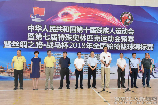 (本网讯)61010时在雄壮的国歌声中,中华人民共和国第十届残疾人运动会预赛暨第七届特殊奥林匹克运动会预选赛暨絲绸之路“战马杯”2018年全国轮椅篮球锦标赛在我校未央校区体育馆举行。陕西省篮球协会和西安市残联的相关领导出席。副校长陈桦出席了开幕式并致欢迎词。