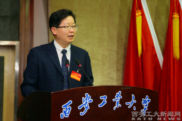 陕西省委高教工委副书记李智军做了重要讲话,他指出,近几年西安工业大学教育事业实现了跨越式发展,尤其是2017年成绩显著,领导班子充满活力,整体发展呈上升趋势。他希望教职工埋头苦干,推动学校各项事业发展再上台阶。李智军强调,要进一步加强党委对工会、教代会的领导和支持,更好地发挥其作用,助力学校各项事业的发展。