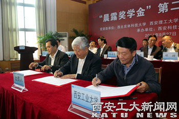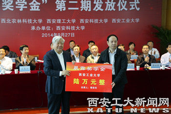 (本网讯)9月27日,校党委书记赛云秀,校长廉振民,副校长刘卫国、雷亚萍在西安科技大学参加了 “晨露奖学金”第二期发放仪式。参加仪式的还有省委副书记、省高教工作领导小组组长孙清云、省政府副省长庄长兴、省人大常委会原副主任邓理、省委副秘书长薛耀瑄、省政府原副秘书长薛汉军、省委高教工委书记李仲为和省委高教工委副书记、教育厅厅长、厅党组书记李兴旺等有关领导。