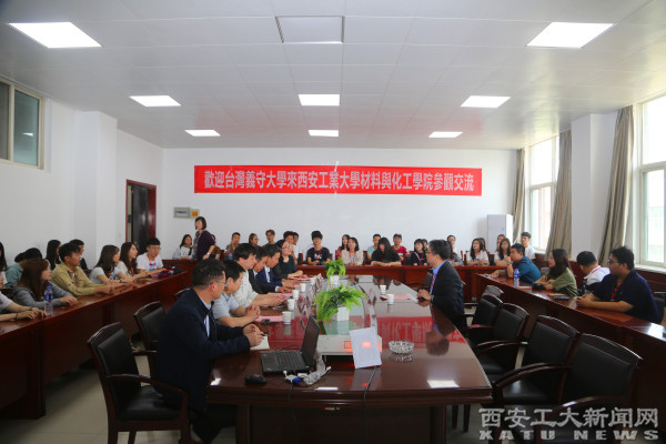 交流会上,我校港澳台事务办公室副主任张邈致欢迎词,对傅信维教授及同学们的到来表示欢迎。材料与化工学院院务委员会主任路金龙向大家介绍了我校发展历史、优秀文化传统以及在学科发展、专业建设、人才培养等方面取得的成就,他表示,我校与义守大学有着深厚的友谊,并希望通过此次交流,进一步建立合作关系,在科学研究、学生培养、文化交流等方面能够长久合作,共同发展。傅信维向大家介绍了学校的基本情况,对我校此次热情接待表示受宠若惊,并代表义守大学向我校赠送了礼品。最后,大家共同观看了我校宣传片《梦未央》。