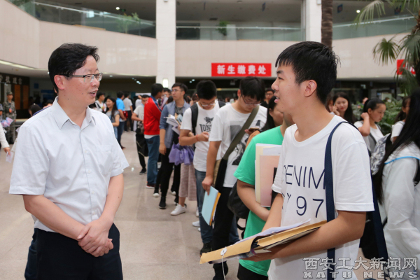 校党委书记刘卫国,校长雷亚萍在新生报到期间来到现场,亲切询问新生报到是否顺利,入学准备情况,并希望同学们相互关照,尽快熟悉大学环境,适应大学生活。