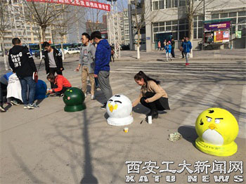 (本网讯)时值初春三月,为迎合“新学期,新气象”的良好风尚,我校电子信息工程学院以弘扬雷锋精神和美化校园为契机,开展了为期三天的以“雷锋三月,炫彩校园”为主题的校园涂鸦活动。