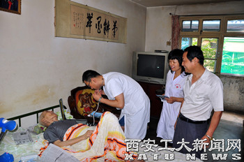 (本网讯)为了进一步将“三严三实”学习活动落到实处,经离退处与校医院联系,7月16日,两部门开展了“送温暖、送医疗、送健康”活动,组织医护人员走进我校离退休老同志家中,为16位身患重病、行动不便、长期卧床的老同志进行上门医疗延伸服务。