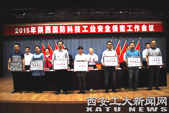 (本网讯)4月29日,2015年度陕西国防科技工业安全保密工作会议在西安召开,国家国防科工局安保司司长蔺建勋、省国家保密局、省公安厅、省国防工办和全省军工单位负责人、校党委副书记丁养斌和保密办负责人参加了本次会议,会议表彰了2013-2014年度陕西国防科技工业安全保密先进集体和先进个人,我校首次荣获“陕西国防科技工业安全保密先进集体”的荣誉称号。