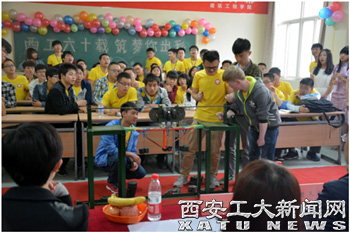 (本网讯)近日,为献礼六十周年校庆,以“西工六十载,筑梦你出彩——单跨桥梁设计” 为题的西安工业大学第三届结构设计大赛在工4楼以及教4楼一楼中央大厅双会场举办。来自不同学院的84个参赛队共342人参加并提交计算书,竞赛评委会对同学们提交的结构设计方案和计算书进行了认真的审议,有35组通过了审议获得了参加决赛的资格。学校建筑工程学院党政领导、校庆60周年返校校友及400多位学生共同见证了此次比赛。