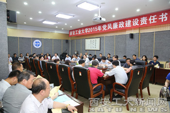 首先,由校纪委书记许尚年从严明党的纪律,狠抓作风建设、深入落实纪委监督责任,进一步强化责任追究、强化监督检查,规范权力运行、做好信访举报受理工作,持续加强案件查办、进一步做好党风廉政教育工作,营造廉政文化氛围等五个方面介绍了纪委2015年工作要点,并对本次签订责任书有关事项进行了说明。