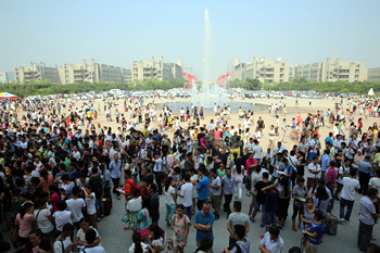 活泼起舞的喷泉、彩色的热气球、食堂可口的饭餐、细心设置的饮水处,这些看似不经意的细节无一不体现出学校各部门间的精心准备、紧密合作,也都是确保新生报到工作顺利进行的重要因素。