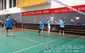 (本网讯)近日,由校工会主办,图书馆工会和材料与化工学院工会承办的西安工业大学羽毛球“争霸赛”在金花校区体育馆拉开帷幕。教职工羽毛球运动协会名誉会长、副校长刘建勋宣布比赛开始并参与了比赛。副校长刘卫国也参加了男双精英组的比赛。