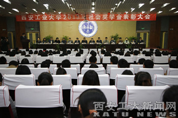 (本网讯)11月22日,我校2013年社会奖学金表彰大会在未央校区图书馆报告厅举行。西北兵工局局长刘建民及各设奖单位有关领导应邀出席大会,校党委书记赛云秀,校长廉振民,校党委副书记丁养斌,纪委书记许尚年,副校长刘卫国、雷亚萍出席大会。