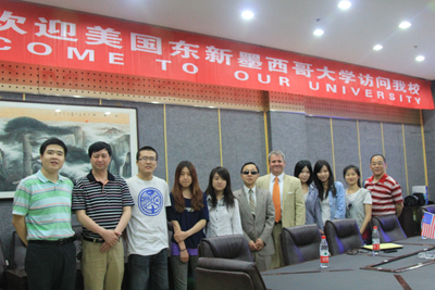 (本网讯)5月20日,美国东新墨西哥大学艺术学院院长约瑟夫. 克莱茵博士和美国国际经济文化交流协会武康主任对西安工业大学进行了友好访问,并对我校首届参加美国大学“1-2-1(2+2)”留学项目的学生进行了面试。
