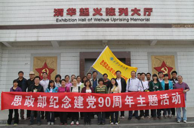 (本网讯)为庆祝中国共产党成立90周年,切实贯彻落实科学发展观,深入推进创优争先活动,引导思政部全体教师学习优秀共产党员的先进事迹和模范言行,继承发扬党的优良传统,进一步提高部门全体教师的思想政治素养和职业道德素质,激发全体教师投身部门发展的热情, 5月15日,西安工业大学思政部直属党支部组织部门全体教师赴渭华起义纪念馆进行参观学习,追忆峥嵘岁月,弘扬革命精神。西安工业大学党委副书记丁养斌、西安工业大学雁塔校区党委书记孙建乐参加了此次活动。