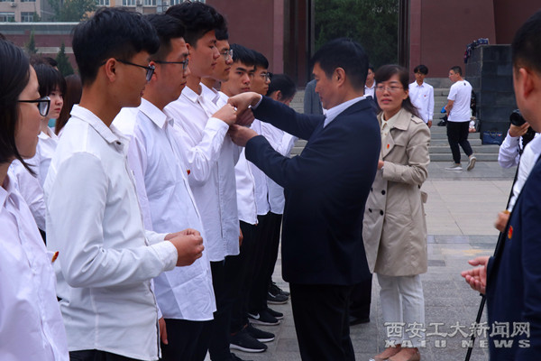(本网讯)4月22日,西安工业大学“青春心向党·建功新时代”特别主题团日活动在西安烈士陵园举行,团员代表、团学干部等80余人参加了活动。校党委副书记吴介军参加活动并寄语团员青年。