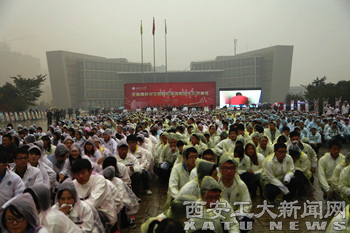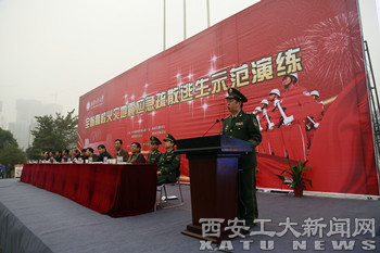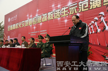 全省高校应急疏散逃生示范演练在西安工业大学举行(西部网2013 11 11)