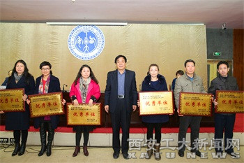 于孟晨宣读了关于表彰2015年招生宣传优秀单位和就业先进集体的决定,2015年学生工作会议优秀论文获奖名单和2014-2015学年校级优秀辅导员获奖名单。相关校领导为获奖单位和个人颁发了奖状及证书。