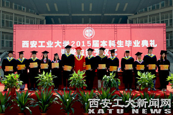 苗润才为毕业生代表拨穗并授予学位。接着,苗润才发表了热情洋溢的讲话。他首先代表学校全体师生员工向顺利完成学业的4579名同学表示热烈的祝贺,向为同学们成长倾注着爱心、汗水和智慧的老师们表示衷心的感谢。他说,今年我们喜迎西安工业大学建校60周年,共同经历并见证了西安工大近几年的辉煌历程。历经60年的风雨,西安工大取得了瞩目的成绩。苗润才谈到,毕业的喜悦和离别的惆怅都不代表着结束,在人生的画卷中,新的一页即将开启,作为同学们的校长、师长和朋友,向所有毕业生提出三点嘱托和期许:一是坚忍不拔、弘扬传统。希望同学们能够继承和发扬“把一切献给党”的兵工精神,践行学校的校风校训,奋发有为。二是学无止境,与时俱进。希望同学们积极钻研,积累经验,要敢于承担重任,善于求是创新,力争做社会可靠的脊梁,做时代前进的先锋。三是静水流深、虚怀若谷。希望同学们怀有一颗豁达之心,不骄不躁,树立正确的人生观,价值观和名利观,传播正能量,建设国家、造福社会。