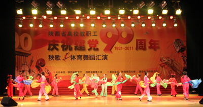 (本网讯)日前,西安工业大学工会组织了一支由50后到80后人员组成的教职工秧歌队参加了由陕西省教育厅、陕西省教育工会主办的“陕西省高校教职工庆祝建党90周年秧歌、体育舞蹈汇演”。