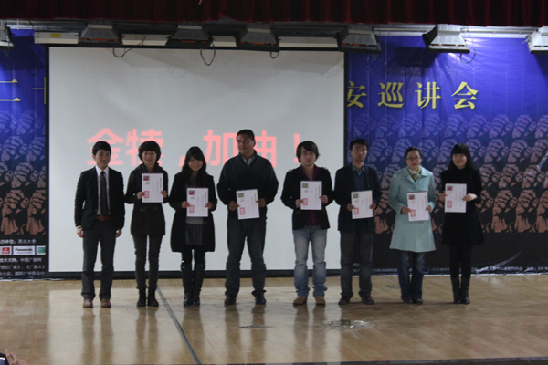 巡讲会上金犊奖组委会向积极支持、组织参与“金犊奖”的高校教师颁发了“金犊奖特约推广人”聘书,我校人文学院文化传播系副主任刘磊被聘为特约推广人。此次巡讲会还邀请到了广州黑马广告公司董事长黑马大叔张小平先生为特约嘉宾做主题演讲。张小平先生针对本届金犊奖主题“全球创意公民”发表了自己的看法和观点,并结合上届金犊奖获奖作品为大家讲解了参赛的技巧和方法,不仅让大家领略了大师的风范,更使大家豁然开朗,受益匪浅,萌发了对金犊奖的浓厚兴趣。