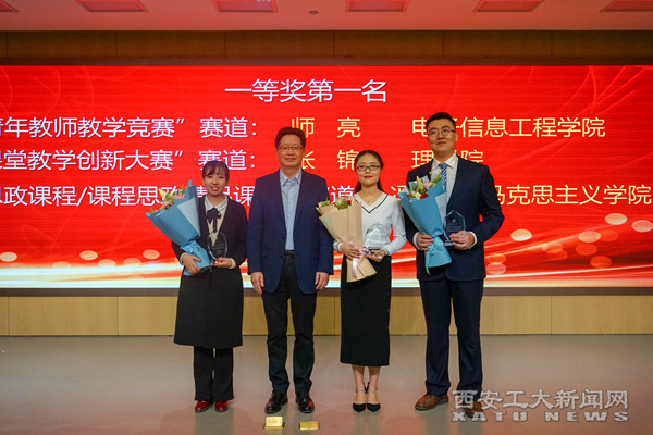 经过4个小时的激烈角逐,比赛结果新鲜出炉。比赛共评选出一等奖9名,二等奖15名,优秀组织奖3个。电子信息工程学院教师师亮、理学院教师张锦、马克思主义学院冯婷分获各赛道一等奖第一名。校领导分别为获奖教师和集体颁奖。