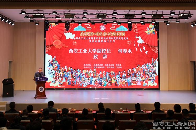 (本网讯)11月5日下午,西安工业大学铸牢中华民族共同体意识主题展演暨第四届民族文化节在未央校区成功举办。本次活动由党委统战部、党委学工部、校团委主办,经济管理学院、设计学院、文学院联合承办。副校长何春水出席活动并致辞。