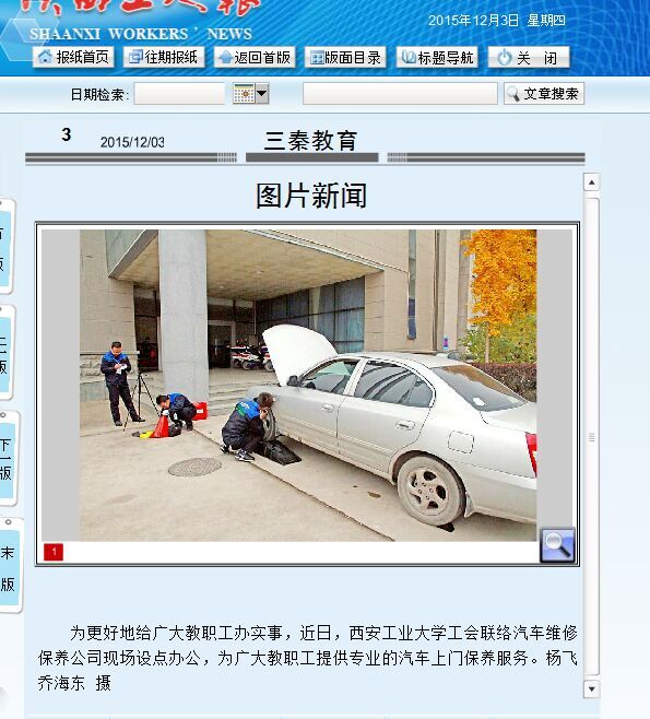 为更好地给广大教职工办实事,近日,西安工业大学工会联络汽车维修保养公司现场设点办公,为广大教职工提供专业的汽车上门保养服务。(杨飞 乔海东)